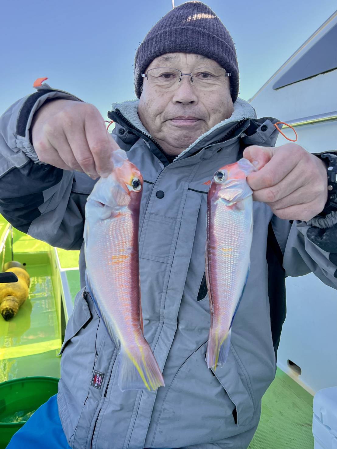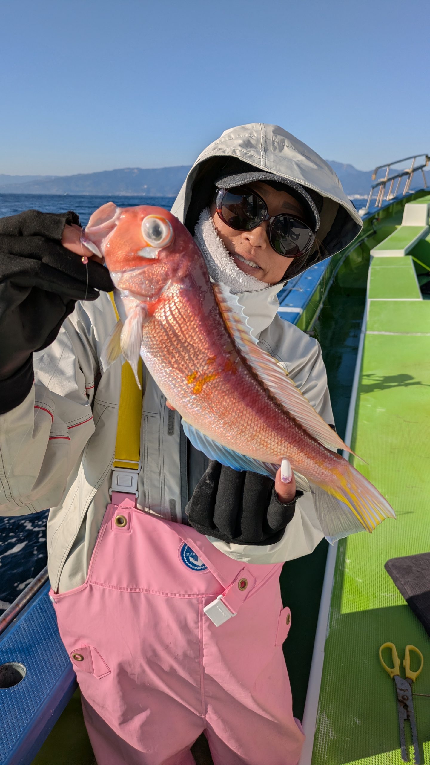 本日は【アマダイ船】です。朝の1時間半はシロアマ狙いですが小型のみでしたね。フグいますので仕掛けは多めにご用意を!早めに深場へと展開しました!!アカアマ狙い、始めは【小型主体】でしたが!?後半戦に【ドンッドンッドンッ】とデカアマ3発浮上しました!!【48cm、47.5cm、45cm、TOP13枚】型も出て、数も出て、絶好調でしたよ!!まだまだデカアマ潜んでますのでやり取りは慎重にお願いします!!明日も【アマダイ船】で出船しますのでお願い致します。10日(土)アマダイ船、11日(日)根魚五目船(今のところシケ予報)12日(月)アマダイ船(ナギ予報)なのでご予約お待ちしております。根魚五目船(キンメ、ムツ)の予定を増やしました。16日(木)18日(日)です。