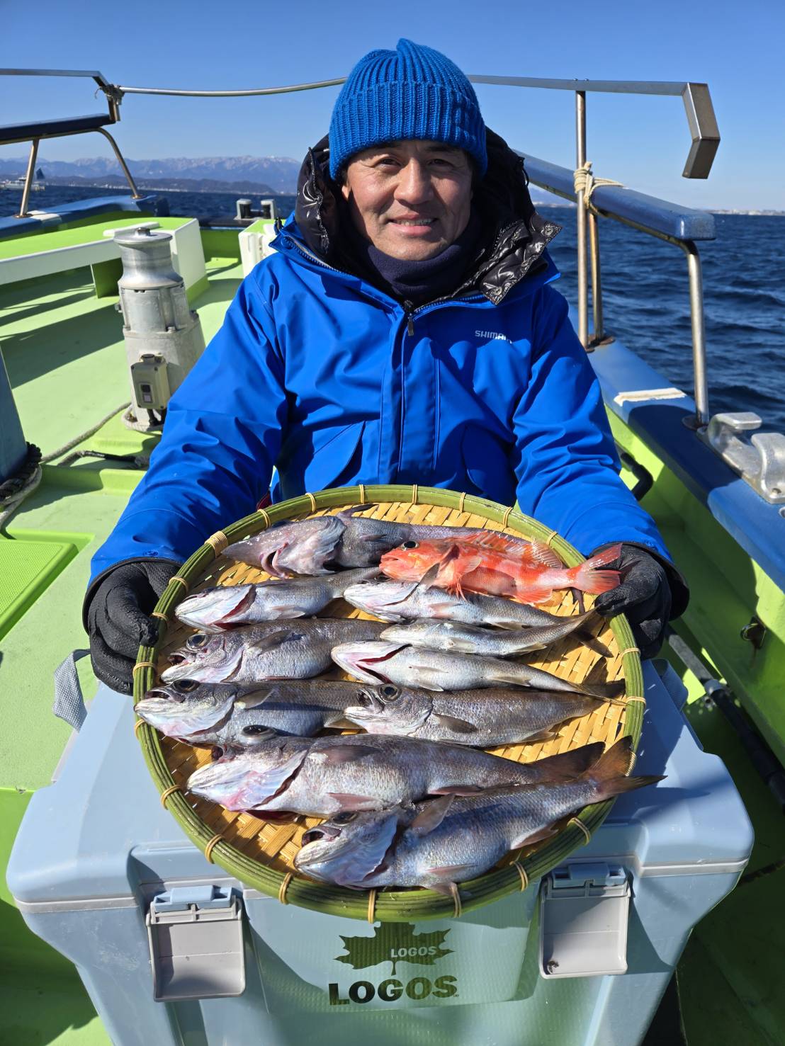 本日は仕立船で【五目釣り】です。てか、さぶッ!!雪模様で極寒!笑 皆さま船頭さんの力をかりてお土産確保できましたよ。ありがとうございました。8日(日)は予報悪く出船中止とさせていただきます。9日(月)は根魚五目船(キンメ、ムツ)で出船しますのでお願い致します。