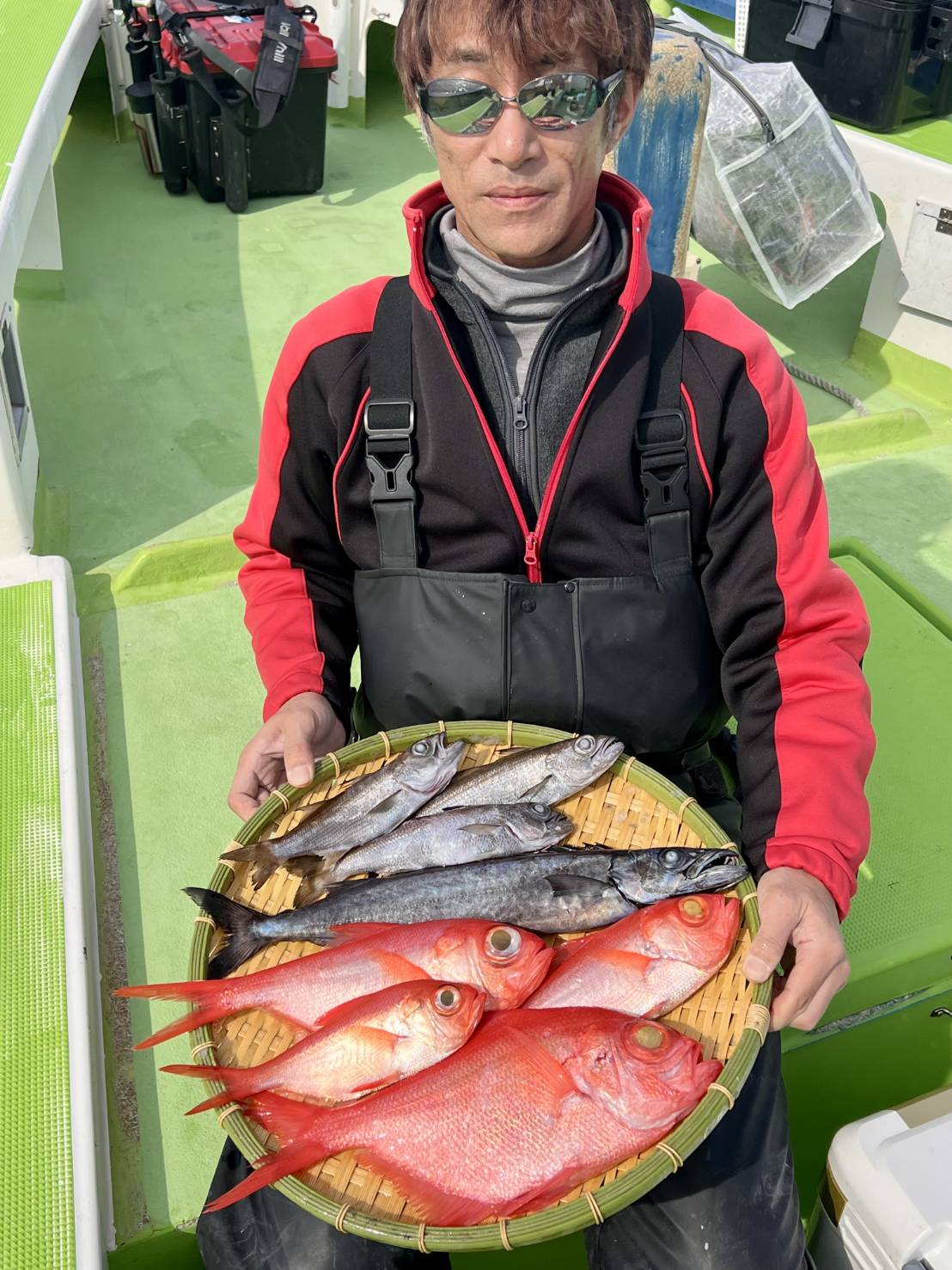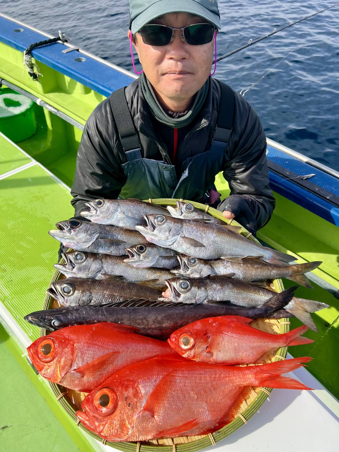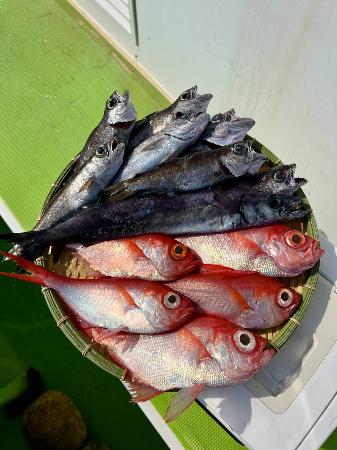 本日は根魚五目船(キンメ、ムツ)です。朝と帰りがけはバッチバチとアタリでてた!!エサ、ルアー、共にお土産バッチリ確保できましたよ!!【キンメTOP5枚、ムツTOP10本、スミヤキTOP2本】アカムツ、オニカサゴ、トウジン、シロムツ、アジ、サバ、などなど。明日も根魚五目(キンメ、ムツ)で出船しますのでよろしくお願い致します。