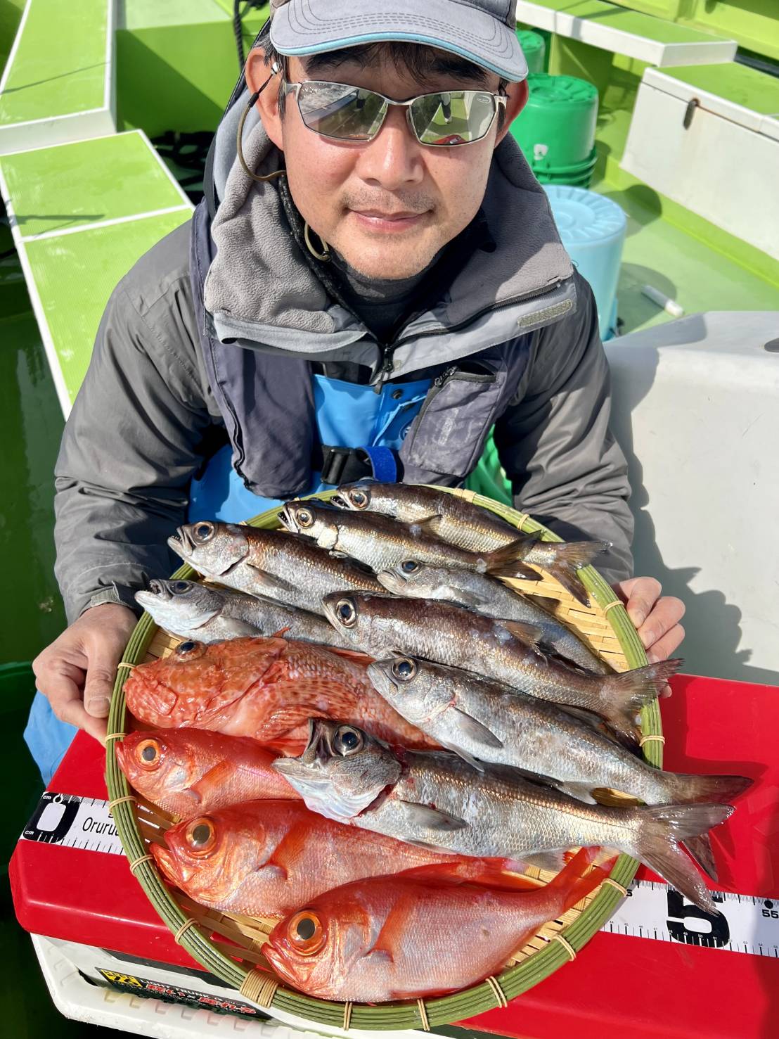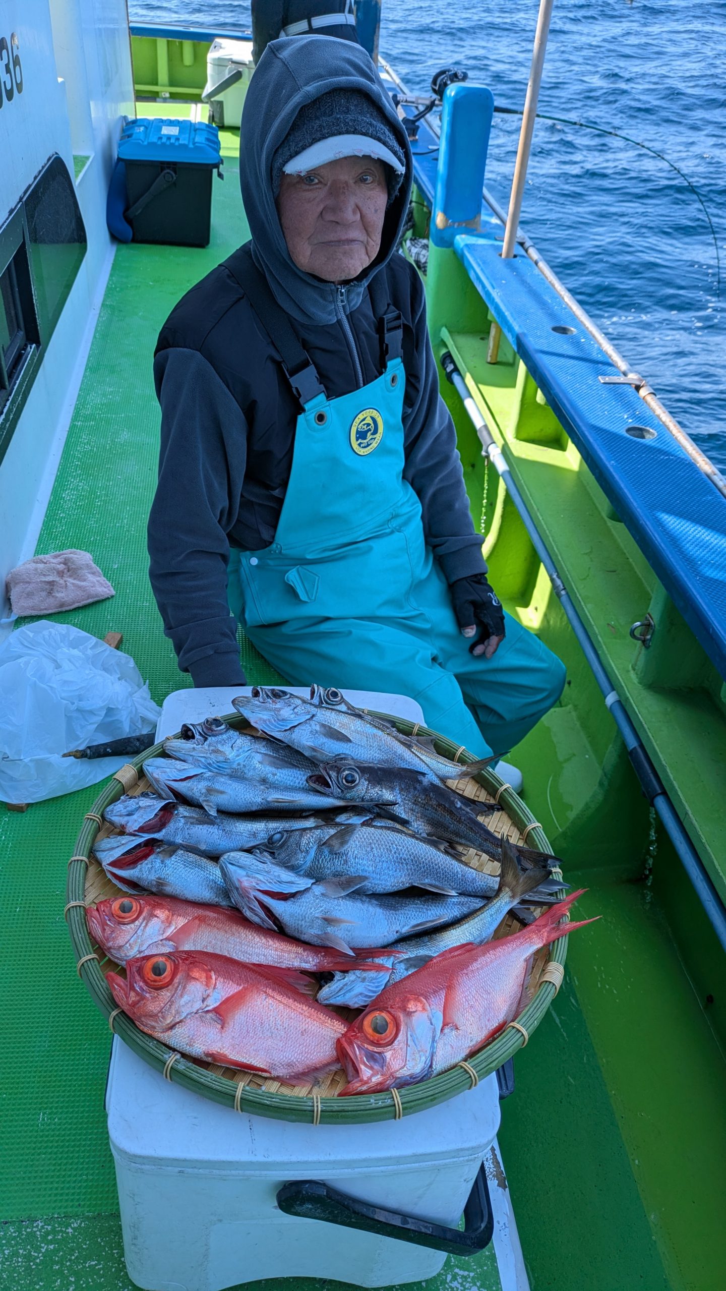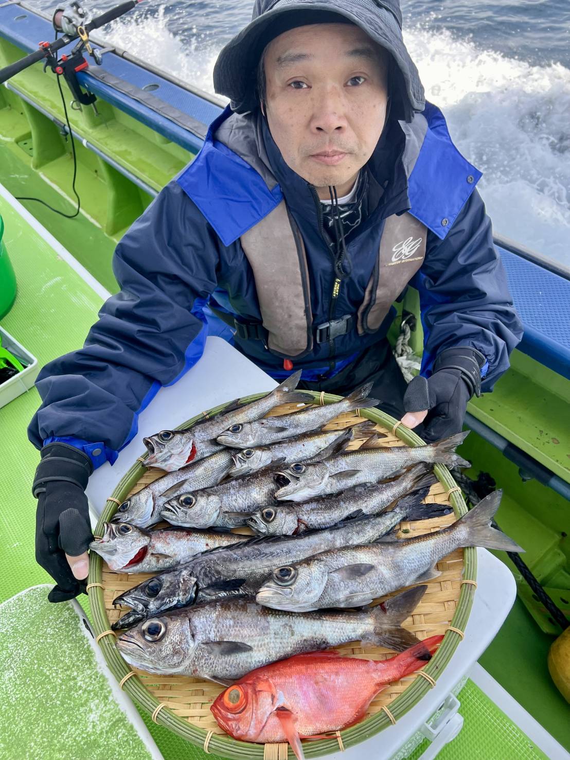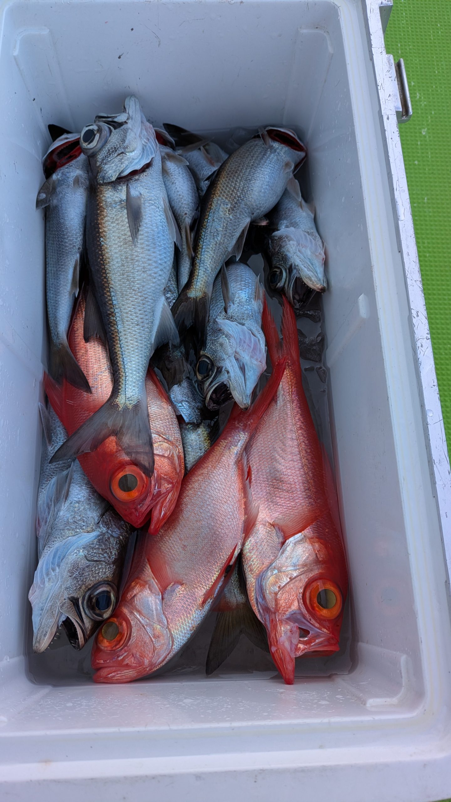本日は根魚五目(キンメ、ムツ)です。昨日のようにバッチバチにアタリありましたよ!!が、、、エサ泥棒多発にて思うように数がのびていかなかったかな。アタリがでたらアワせ入れて引っ掛けてあげてくだいな!!【キンメTOP3枚、ムツTOP13尾、スミヤキTOP3本】アカムツ、シロムツ、アジ、サバ、お土産はバッチリ確保!!14日(土)15日(日)16日(月)も根魚五目(キンメ、ムツ)で出船、空きありますのでご予約お待ちしております。