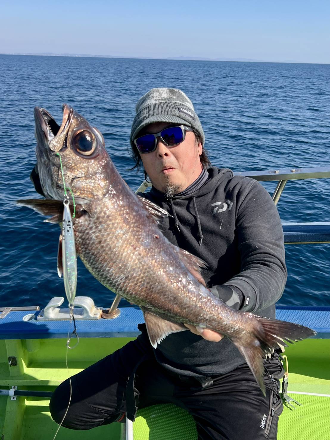 本日は根魚五目船(キンメ、ムツ)です。【アコウ3.3キロ(ルアー)大ムツ2.5キロ(ルアー)】浮上しました!!浅場、深場、共にアタリがしっかりでるポイント、でないポイント、とハッキリわかれてしまったが!?お土産は確保できました。【キンメTOP3枚、ムツTOP14本、スミヤキTOP2本】アタリがきたらしっかりアワせ入れ引っ掛けてあげましょう!!明日も根魚五目船(キンメ、ムツ)で出船しますのでお願い致します。良い魚いるな〜