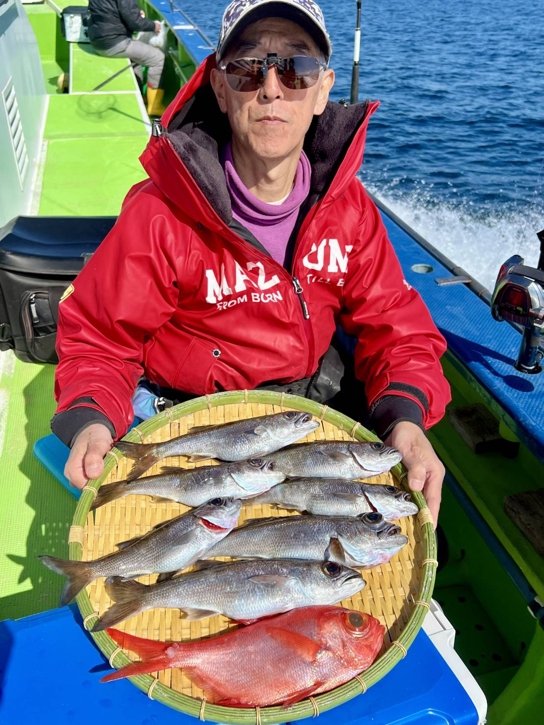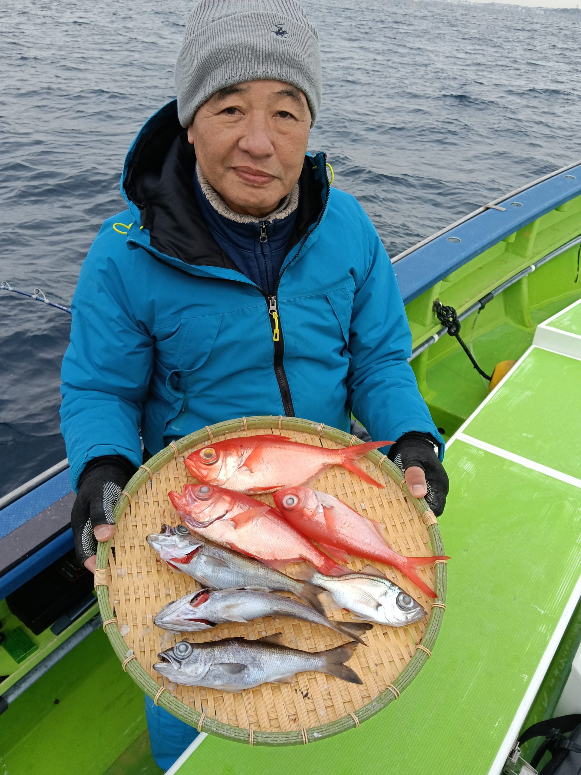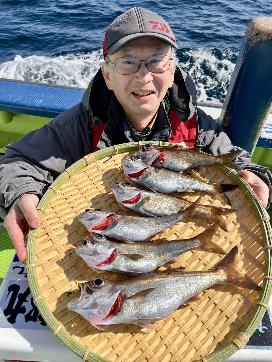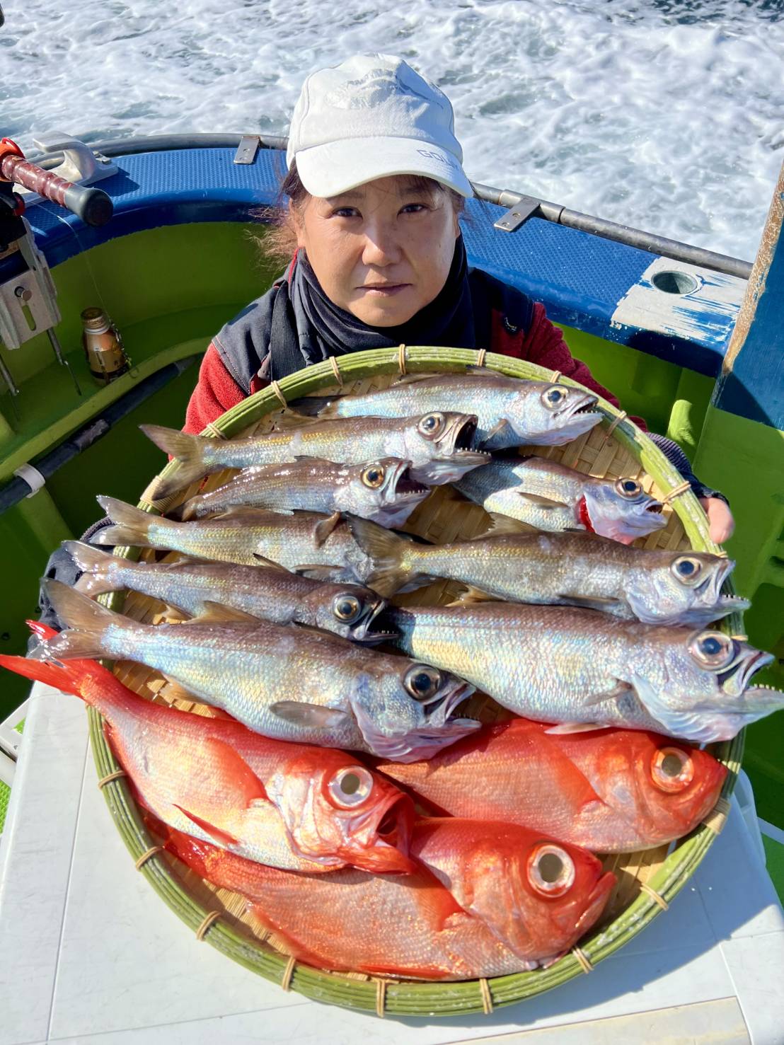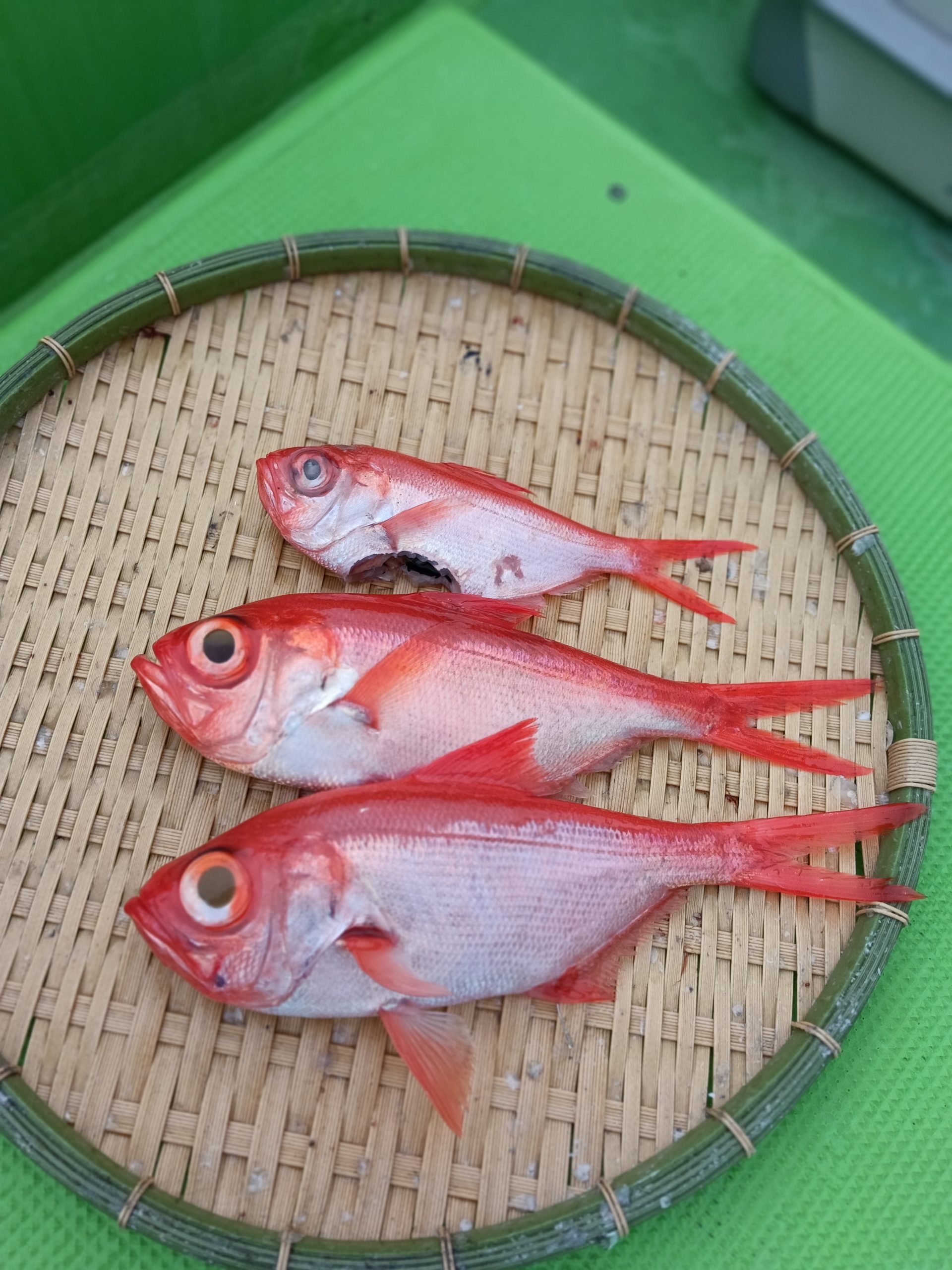 本日は根魚五目(キンメ、ムツ)です。ズドーンと【大ムツ3キロ、キンメ1.1キロ、アコウ】浮上しました〜!!中盤戦はポカーンとしたが朝と帰りがけはバッチバチとアタリでてお土産できた!!レンタルさん良いキンメ釣ってたよ!!【キンメTOP3枚、ムツTOP11本、スミヤキTOP2本】慣れない方は3本針からチャレンジしてみてね。明日も根魚五目船(キンメ、ムツ)で出船しますのでお願い致します。