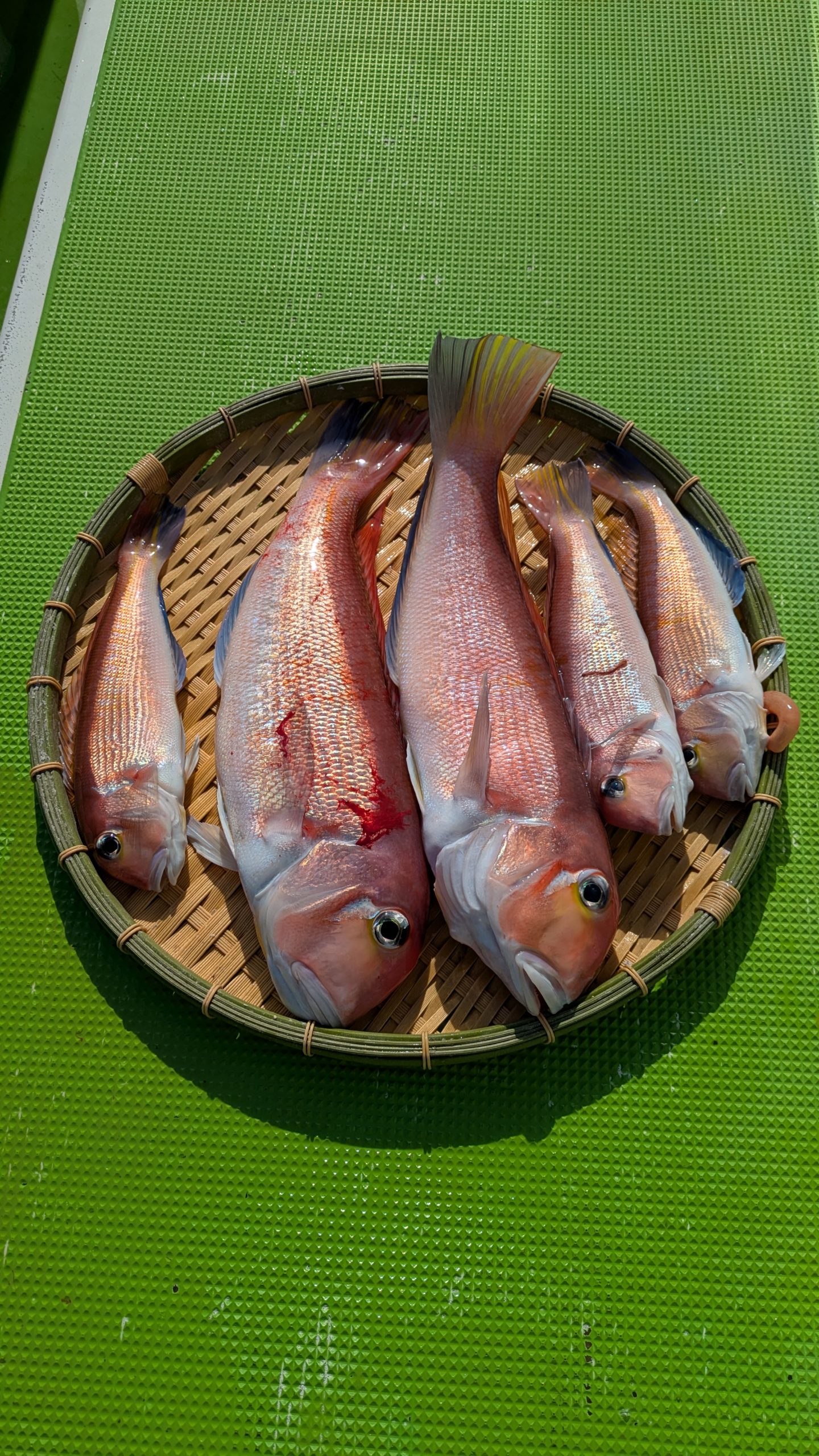 本日は【アマダイ船】です。潮の動きよかったが!?どのポイントも顔だすだけでうまく拾えず。ガッチリはまり、やらかしてたが!?ラスト1流しにて反撃ののろしあがりなんとかなった。【全員釣果、TOP7枚、最大43cm】明日もアマダイ船で出船、ガラガラ状態なのでご予約お待ちしております。6日(金)アマダイ船、7日(土)仕立船、8日(日)アマダイ船、9日(月)根魚五目船(キンメ、ムツ)となります。ご予約お待ちしております。