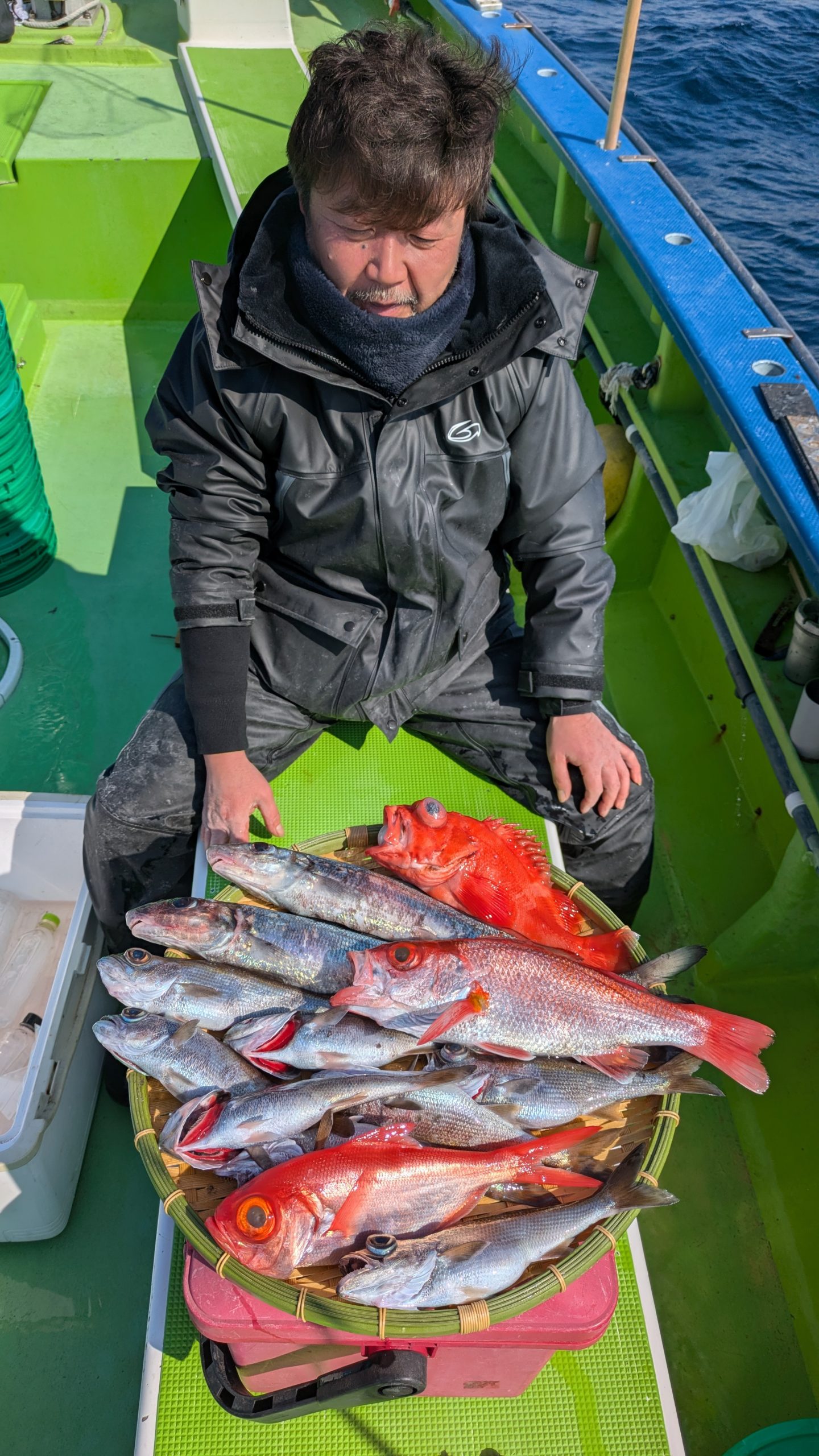 本日は【キンメ、ムツ】です。凄い雪でしたねぇ!激サブっ!!レンタル様多数で出船しました。浅場も深場も毎回アタリはでます。が、針掛かり悪く数はのばせなかったかな。でもお土産はバッチリできましたよ!!木曜日から根魚五目(キンメ、ムツ)毎日出船にします。よろしくお願い致します。10日(火)定休日、11日(水)シケ予報の為お休み、12日(木)根魚五目船(キンメ、ムツ)となります。慣れない方は3本針からチャレンジしてください。レンタルもありますのでご予約お待ちしております。