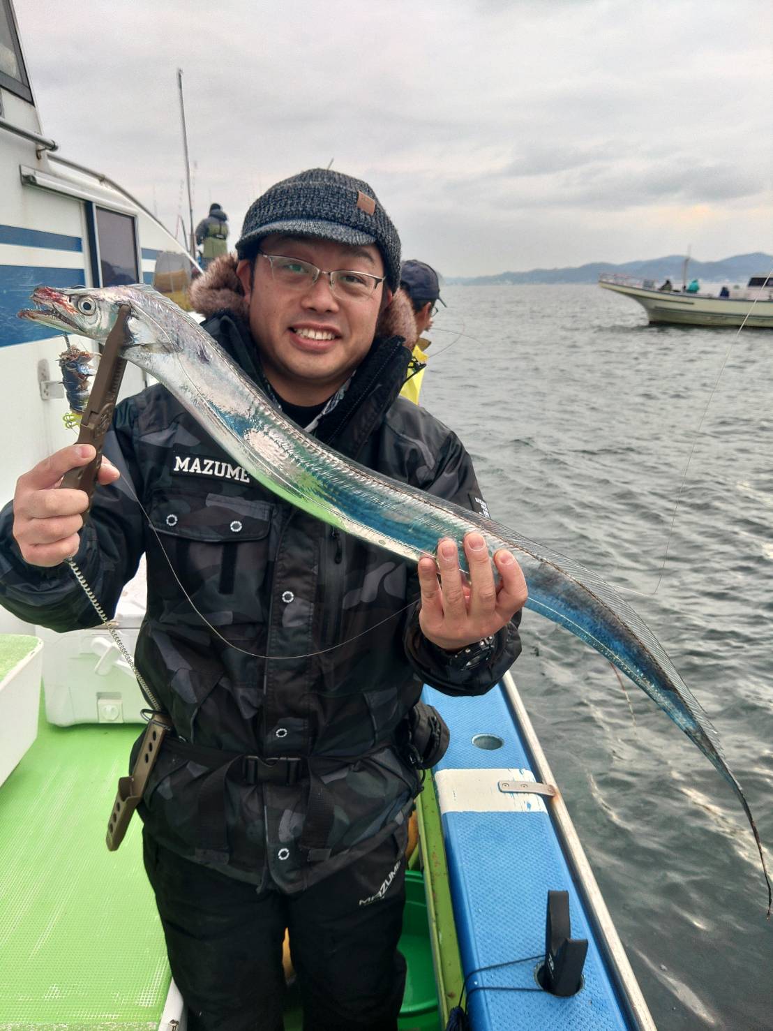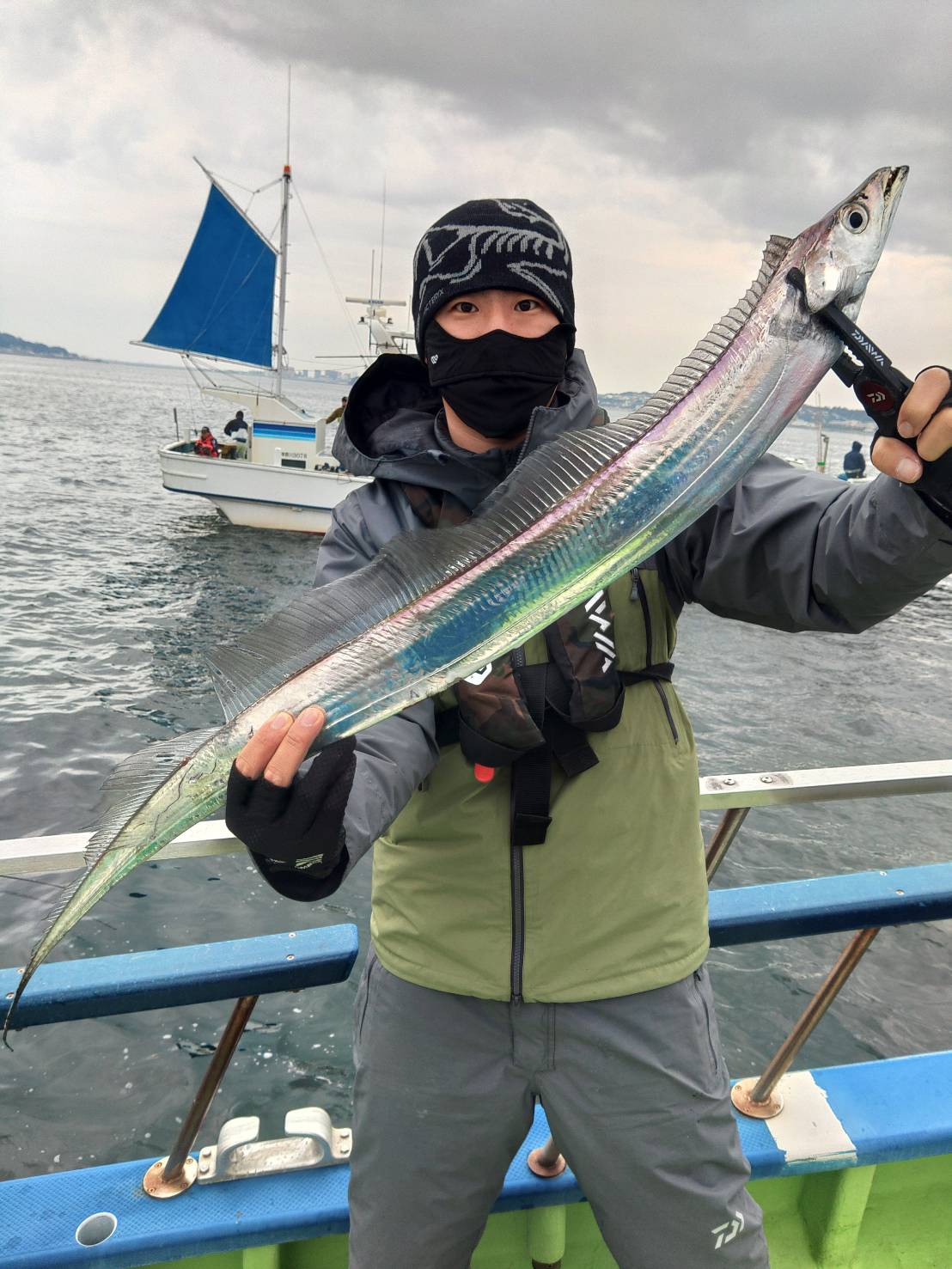 本日は【タチウオ船】です。浅場(18m〜25m)でタチウオ反応あったが、非常にご機嫌ななめで難易度高く釣らせられなかった。すまん!!また食いが良くなることを祈るのみ!!結果、型は良く最大6本指【ルアー】3本〜8本。【天秤、テンヤ】0本〜4本。明日はご要望によりアジ、サバ船で出船しますのでよろしくお願いします。明後日、金曜日はタチウオ船で出船しますのでよろしくお願いします。26日(木)アジ、サバ船、27日(金)タチウオ船、28日(土)根魚五目船(キンメ、ムツ)29日(日)タチウオ船、となりますのでご予約お待ちしております。