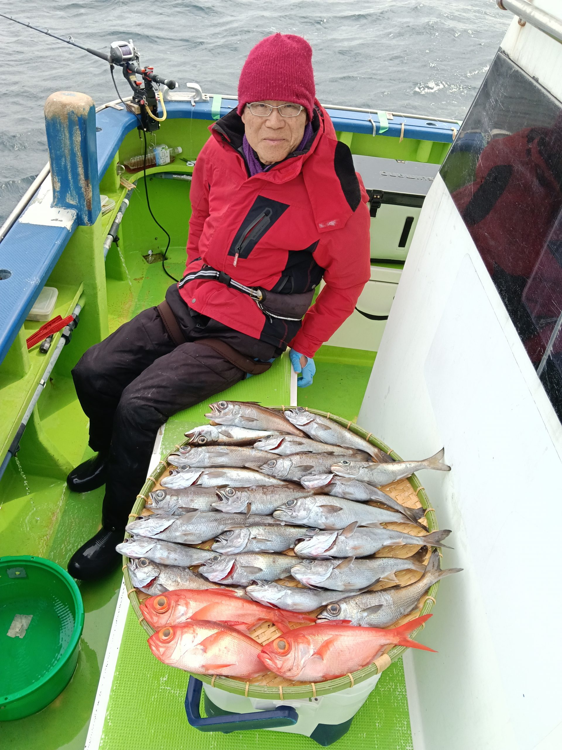 本日は根魚五目船(キンメ、ムツ)です。浅場中心で絶好調継続してます。落とせばバッチバチにアタリきます。【キンメTOP4枚、ムツTOP21本、スミヤキTOP2本】だんだんと潮の濁りに汚れもでてきて春の潮に変わっていくんですかねぇ。根魚五目には最適な潮です。今後も期待していきましょう。慣れない方は3本針からチャレンジしてみてください。3日(火)定休日、4日(水)の出船の有無は前日の夕方に決定しますのでお願い致します。
