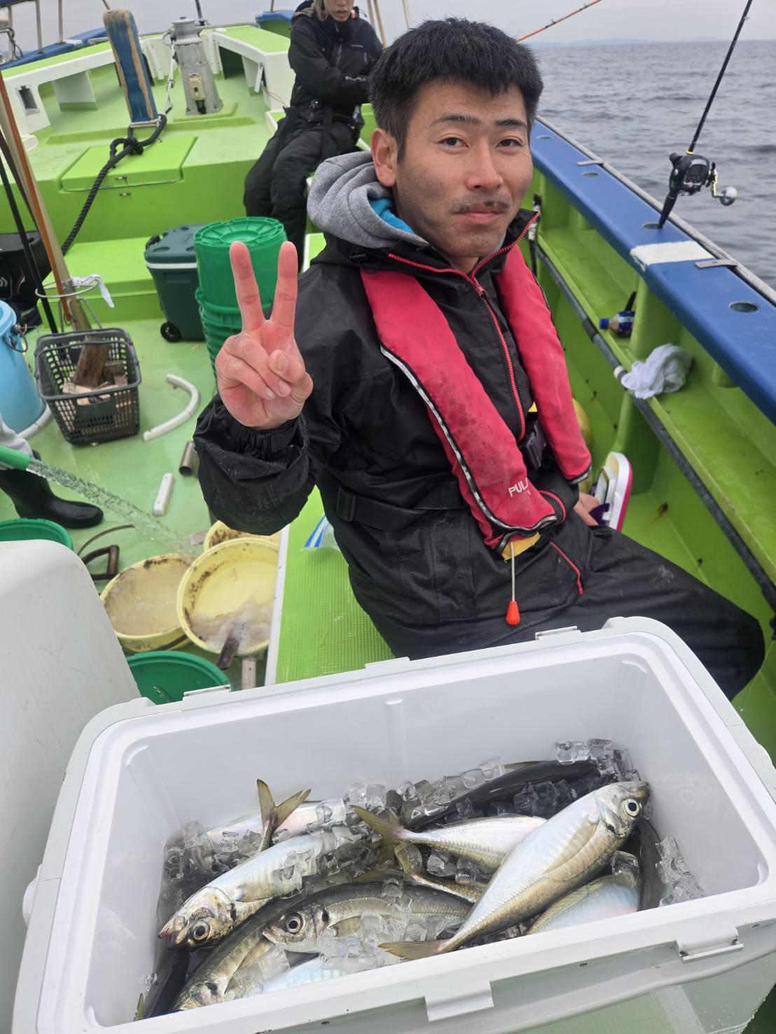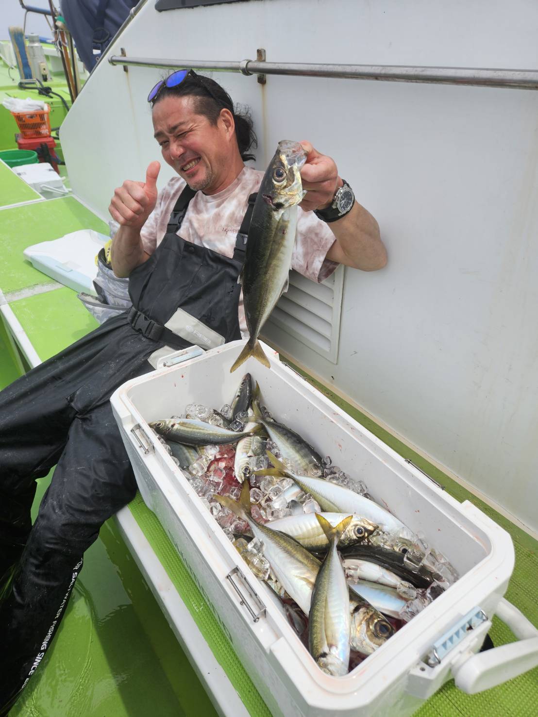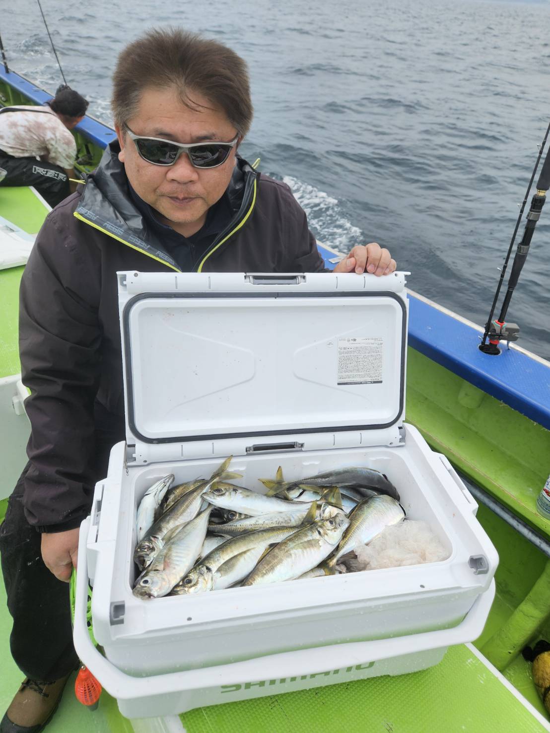 本日はアジ、サバ船です。9時前まではポツポツ程度でしたが!?そこからは反応しっかり固まり爆発しました!!TOP102匹、初挑戦の方も26匹釣れました!!泳がせは??ワラサ4打数1.5安打、サメに食べられ半分こ!!火曜日は定休日、水曜日はアジ、サバ船で出船しますのでお願いします。まだ空きありますのでご予約お待ちしております。30日(木)仕立船、1日(金)根魚五目船、2日(土)3日(日)ヒラメ五目船、となります。