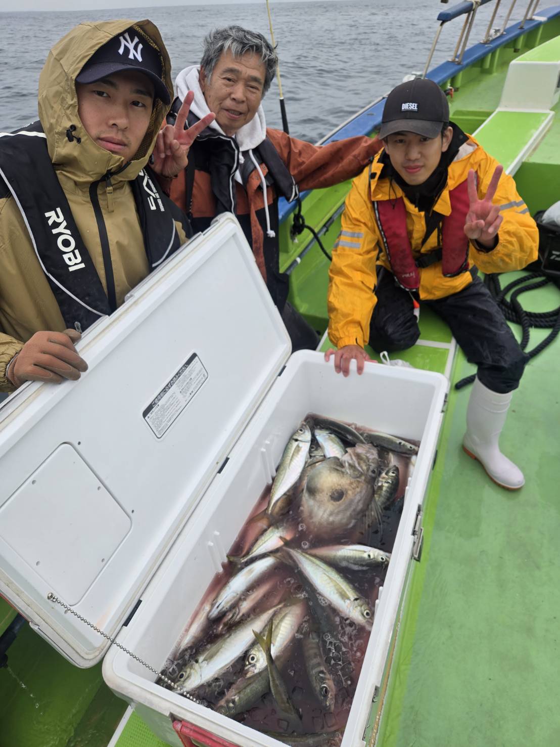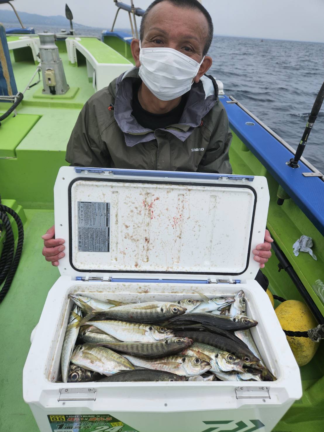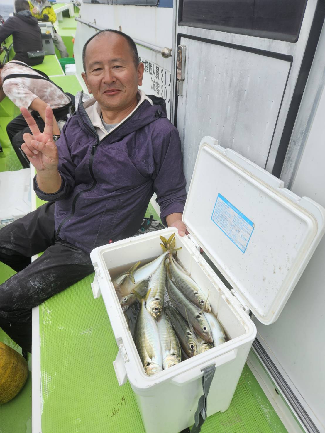 本日はアジ、サバ船です。9時前まではポツポツ程度でしたが!?そこからは反応しっかり固まり爆発しました!!TOP102匹、初挑戦の方も26匹釣れました!!泳がせは??ワラサ4打数1.5安打、サメに食べられ半分こ!!火曜日は定休日、水曜日はアジ、サバ船で出船しますのでお願いします。まだ空きありますのでご予約お待ちしております。30日(木)仕立船、1日(金)根魚五目船、2日(土)3日(日)ヒラメ五目船、となります。